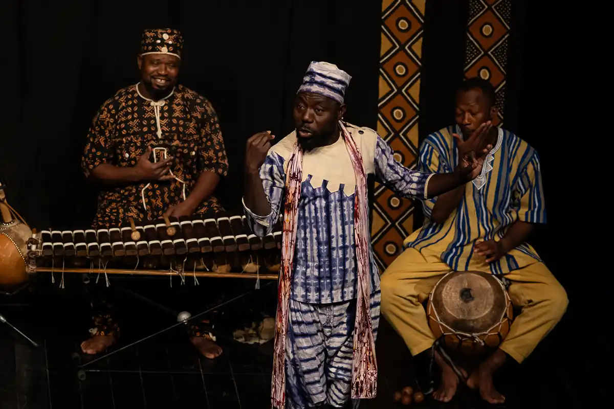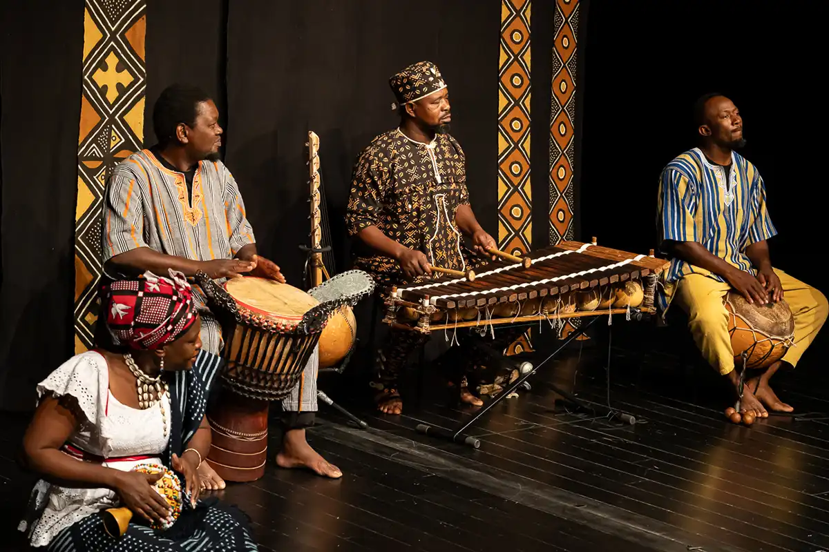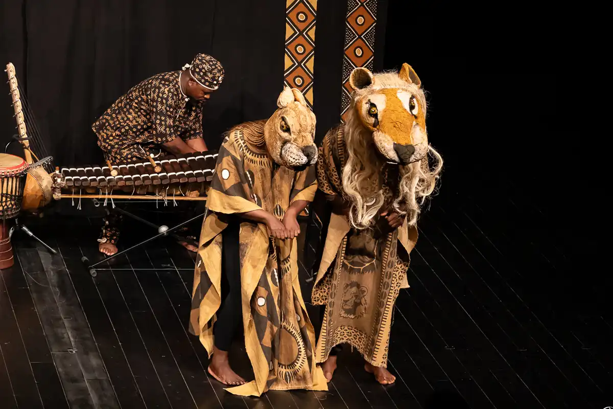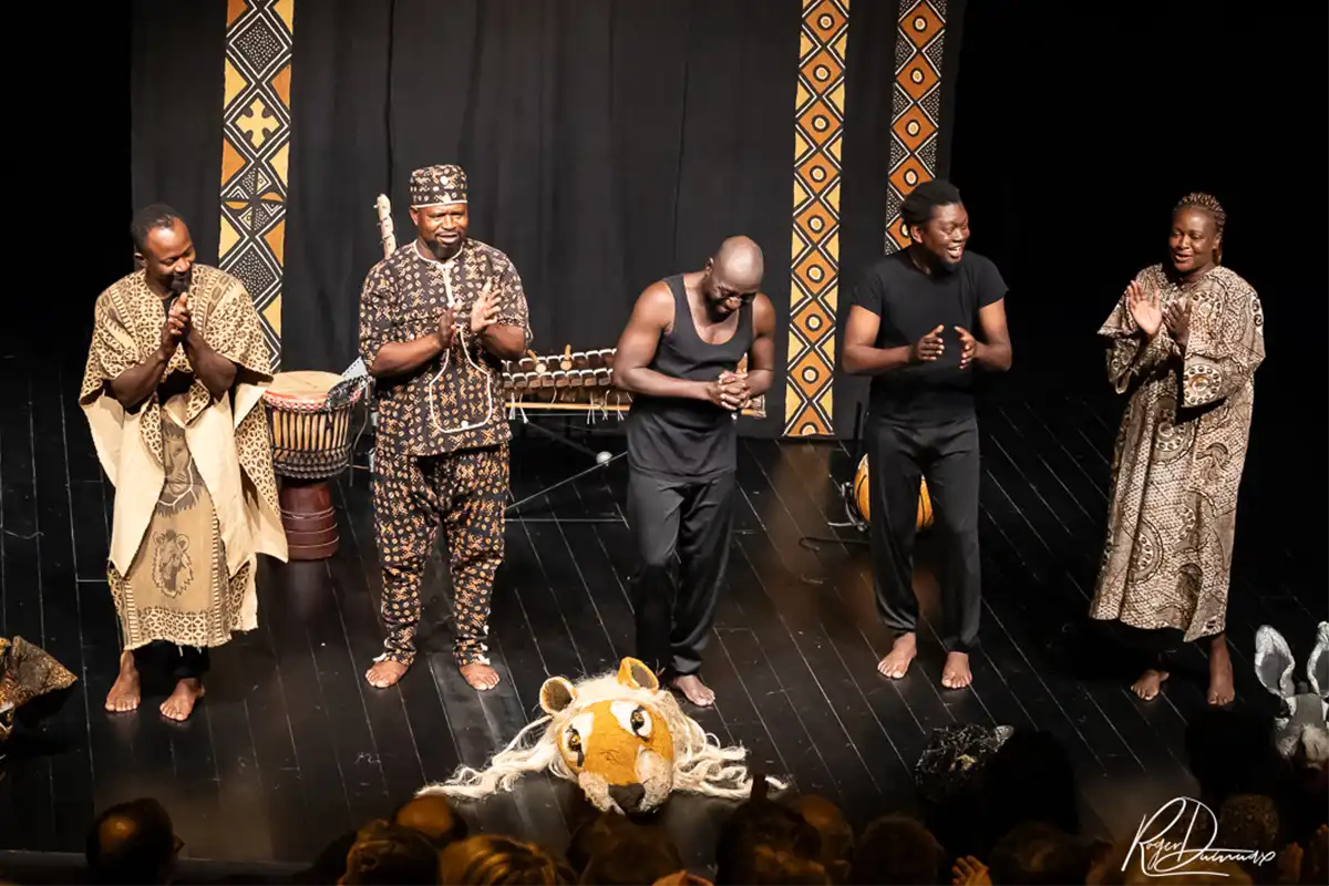 Dans l’auditorium de l’Esty, le soleil rayonnait dans le rire, les claquements de mains et sur les visages des spectateurs. La Cie Marbayassa du Burkina Faso nous a apporté avec humour et générosité, la bonne humeur, les chants, les danses, mais aussi la sagesse de leurs « Contes sous le baobab ».