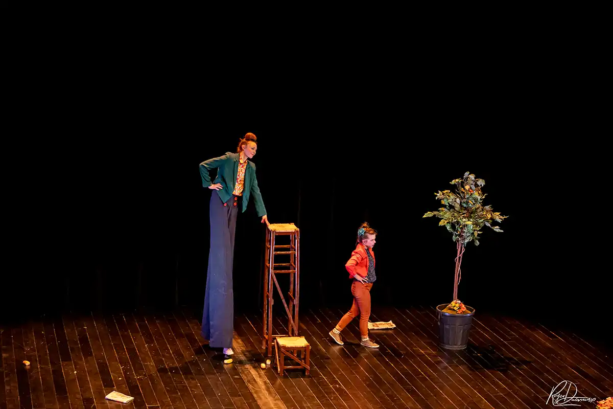 Les deux interprètes du spectacle Si tu n’étais pas là sur la scène de L’Esty