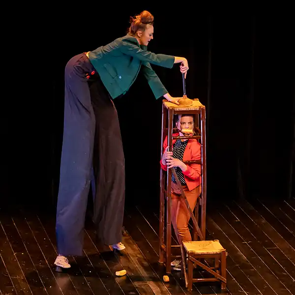 Duo du spectacle Si tu n’étais pas là dans une scène complice à L’Esty